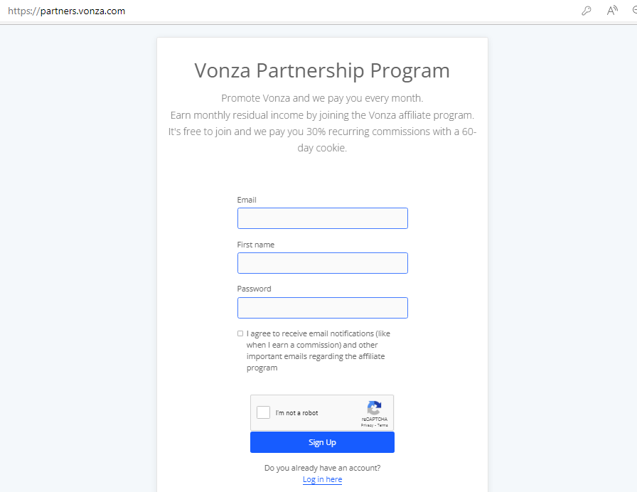 You can join Vonza Affiliate Partners and receive a 30% commission on all your payments for paying customers you refer to on Vonza.com.