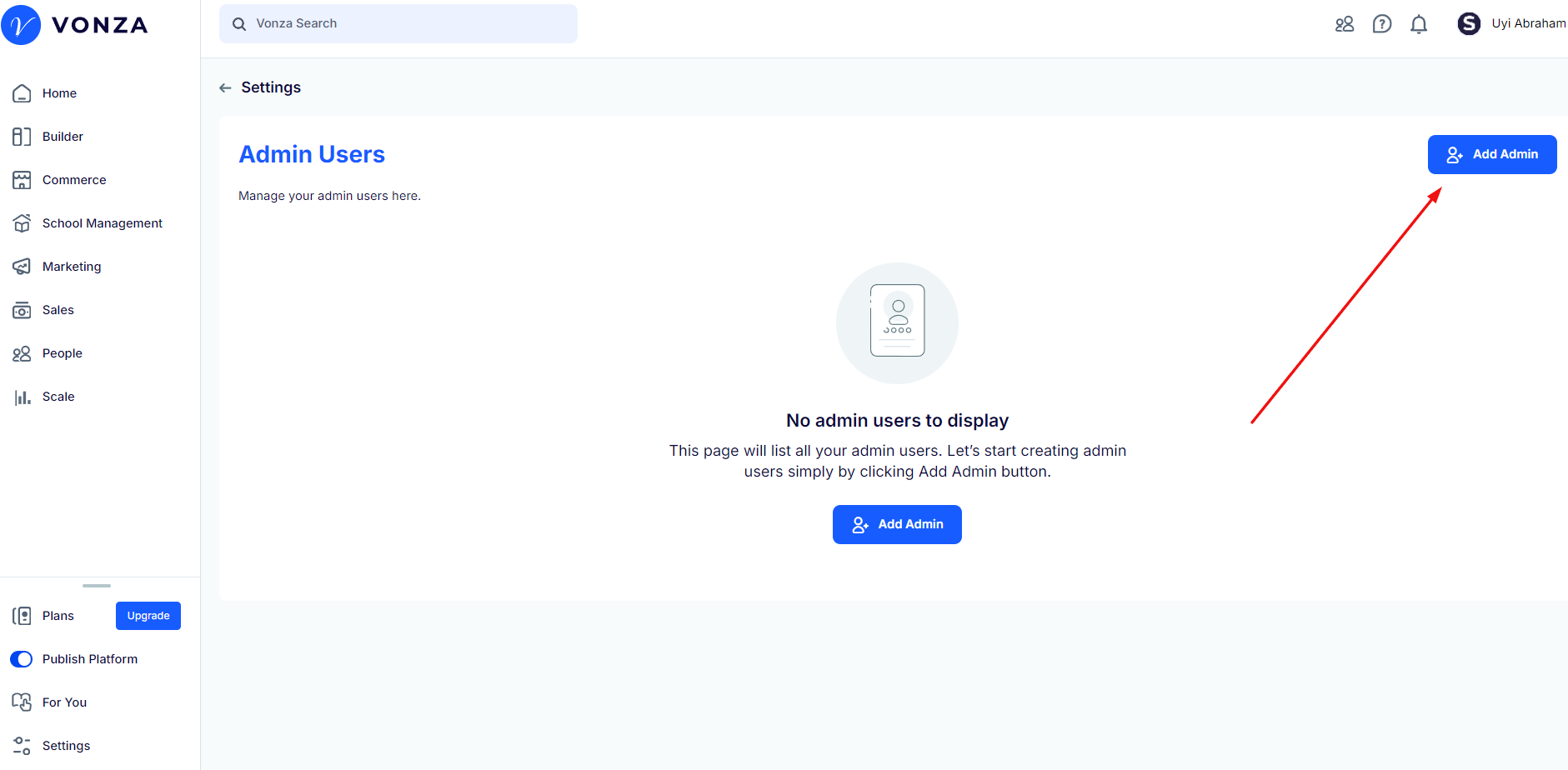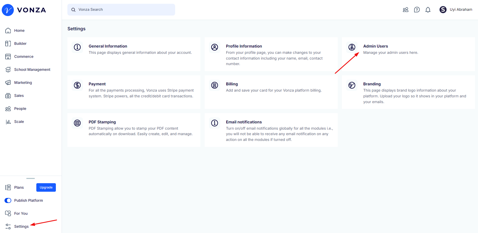 1. Go to your dashboard. On the left side go to Settings and then Click on Admin Users.