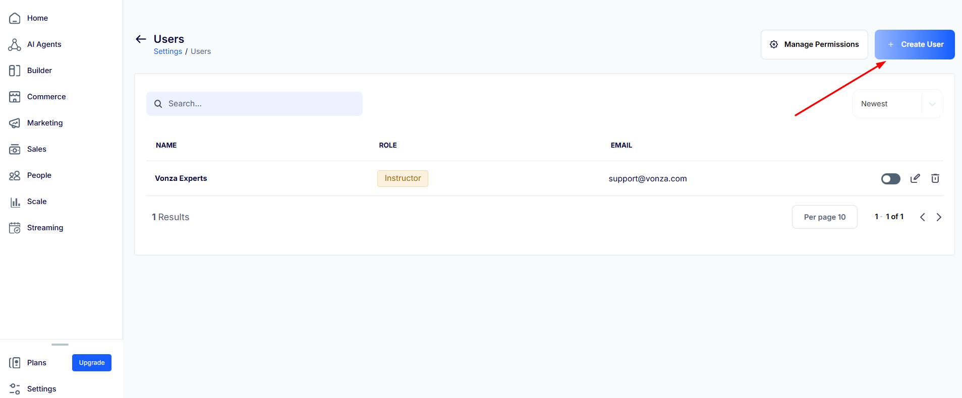 4. The new User will receive an email to update Vonza password.