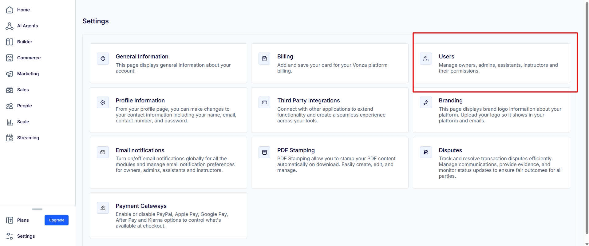 1. Go to your dashboard. On the left side go to Settings and then Click on Users.