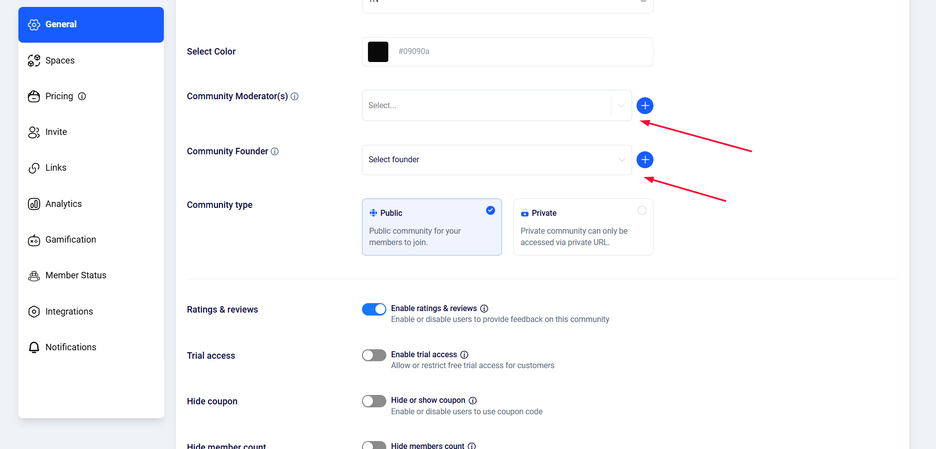6. You can also select the community founder from here.