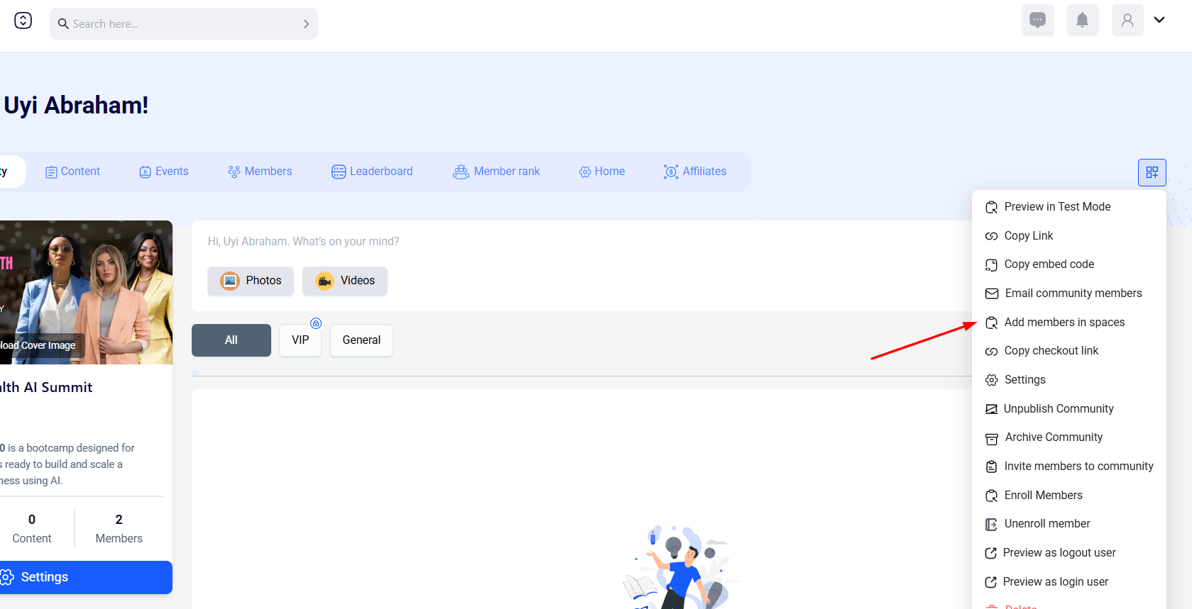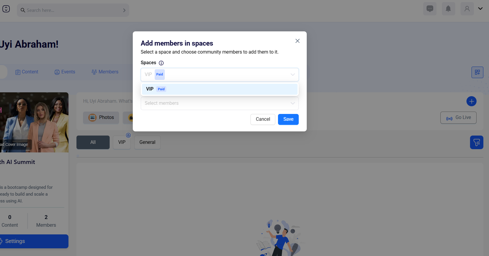 You can add members to a space within your Community in the following steps: